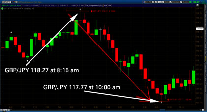 GBP/JPY 118.27 at 8:15AM by 10:AM it went DOWN to 117.77 a 50-Pips Drop. If you would have participated in this trade